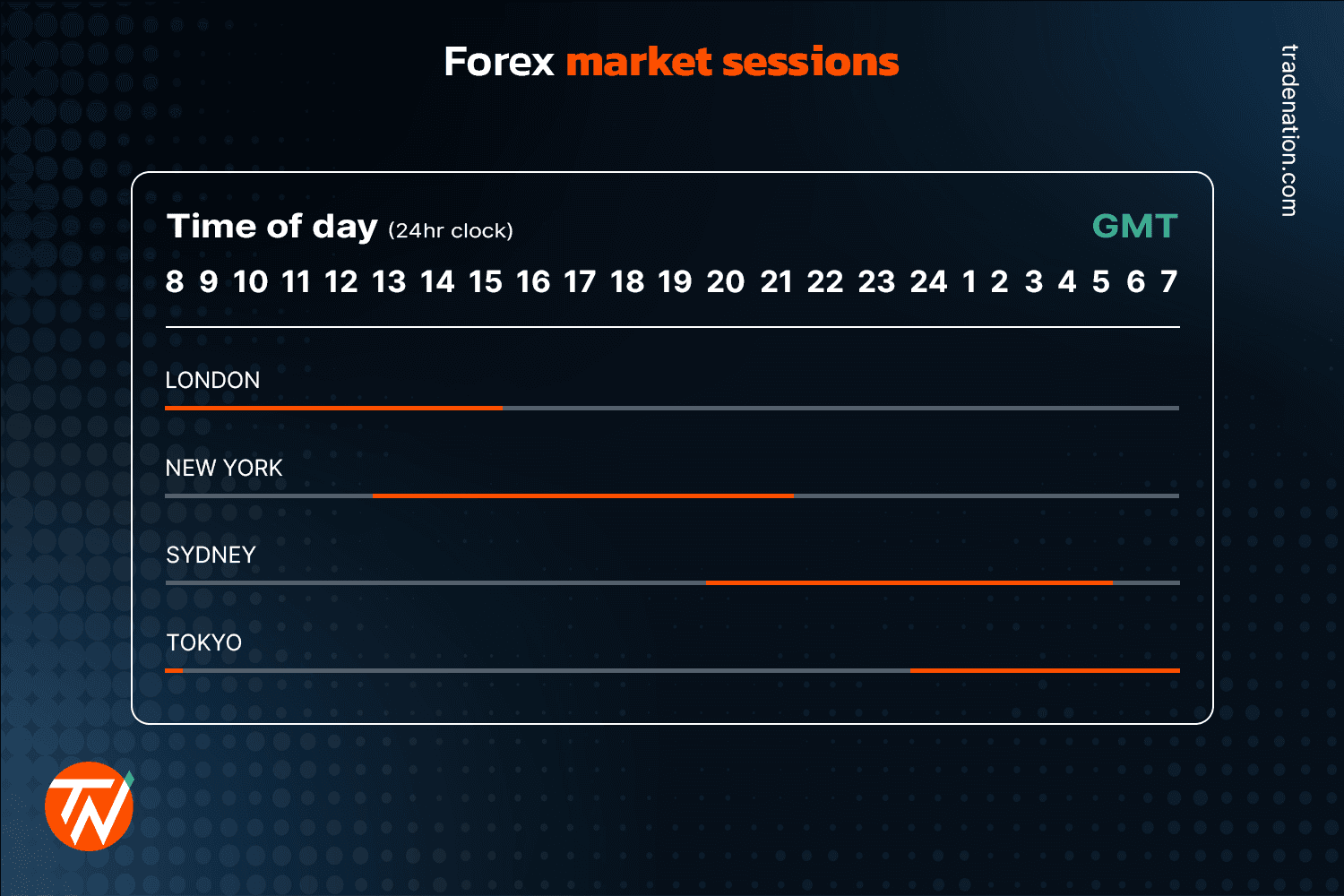 The world has four main financial centres where the market is conducted and maintained: Sydney, Tokyo, London, and New York. The order in which the Forex market hours move is Sydney, Tokyo, London, and New York.